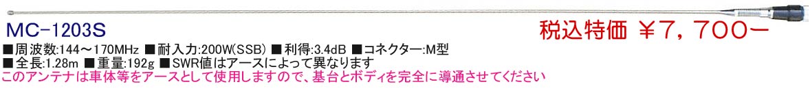 このアンテナは車体等をアースとして使用しますので、