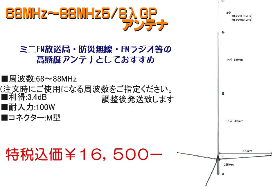 68MHz~88MHz5/8λGPアンテナ