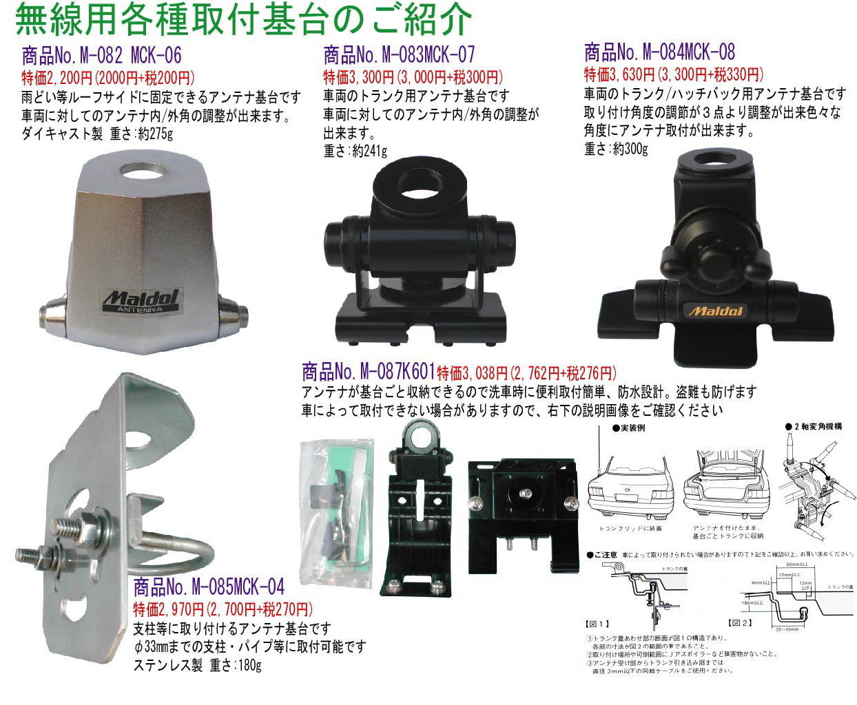 寸法等の変更ポール伸縮時に指や手を挟む危険性のない安全設計モービルアンテナ対応