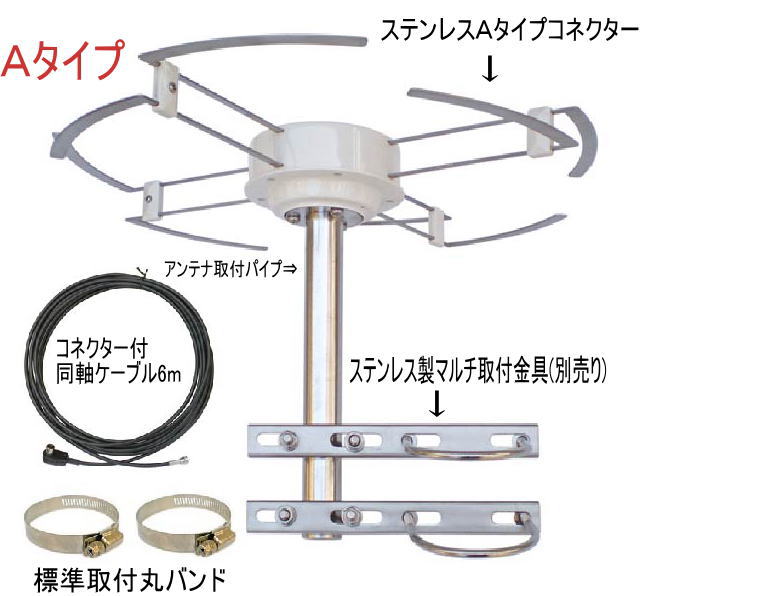 4方向世界初360度型水平偏波多方向無指向性高感度地デジアンテナ
